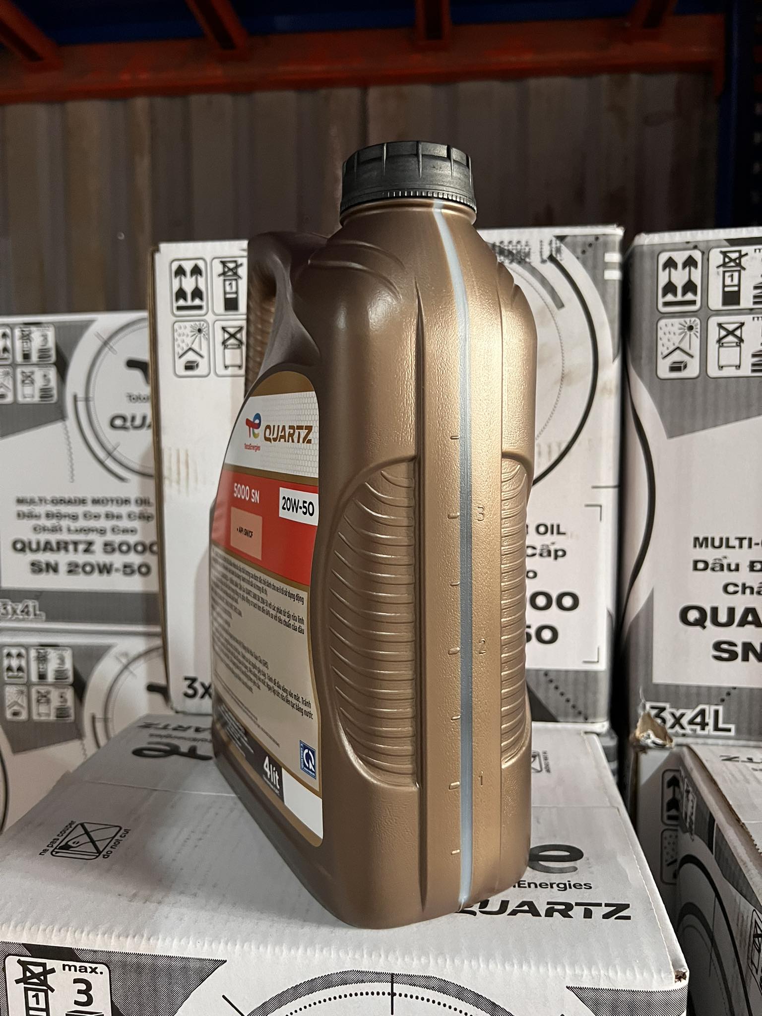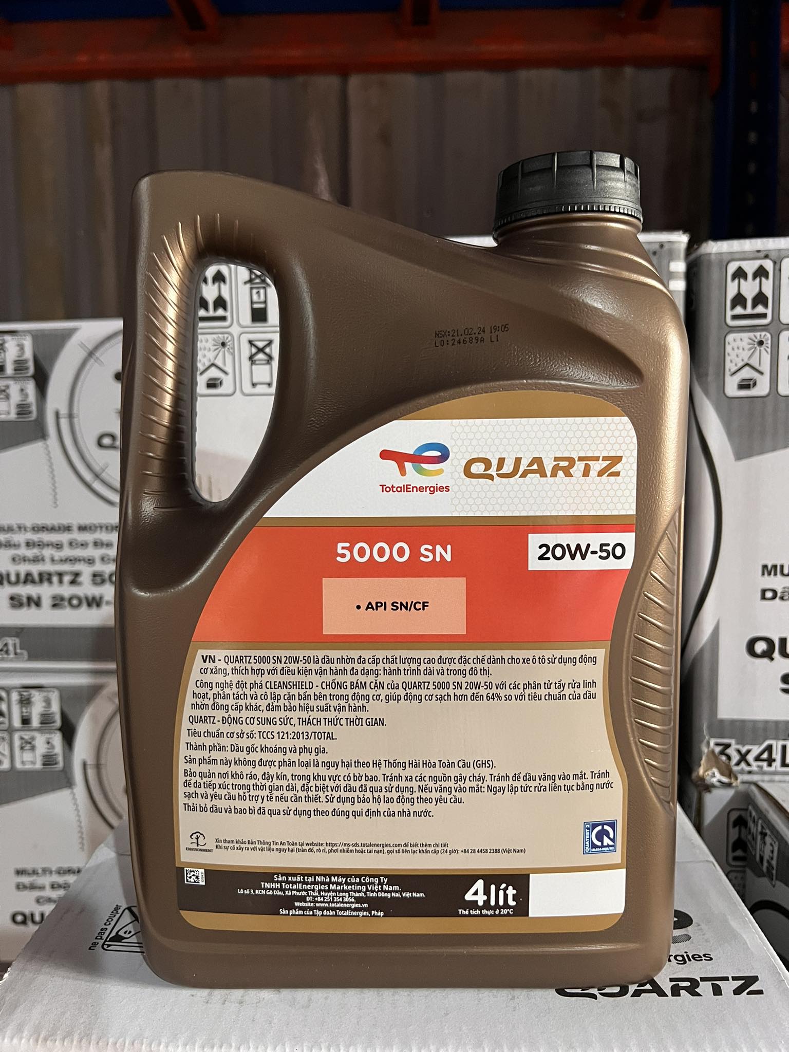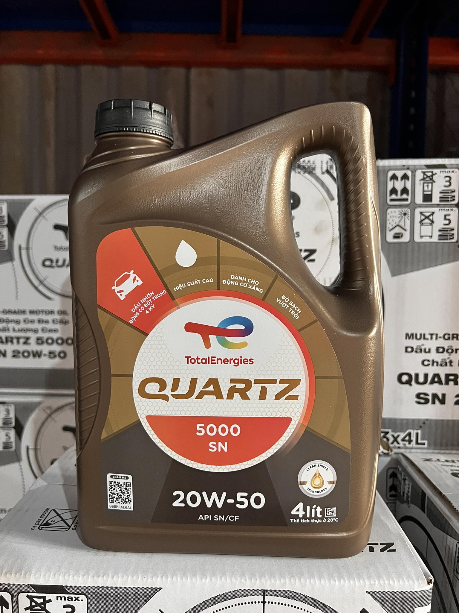- TotalEnergies QUARTZ 5000 SN là dầu nhớt đa cấp hiệu suất cao cho xe du lịch, được thiết kế vượt các yêu cầu bôi trơn động cơ hiện đại của dầu gốc khoáng. Sản phẩm này được phát triển đáp ứng yêu cầu cho cả động cơ xăng và động cơ đi-ê-zen không trang bị bộ lọc hạt.